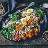 Stir in chopped cavolo nero, chickpeas and harissa to the soup during the last minutes of cooking. Laddle the soup into serving bowls and top with avocado slices, lemon zest and a splash of olive oil.