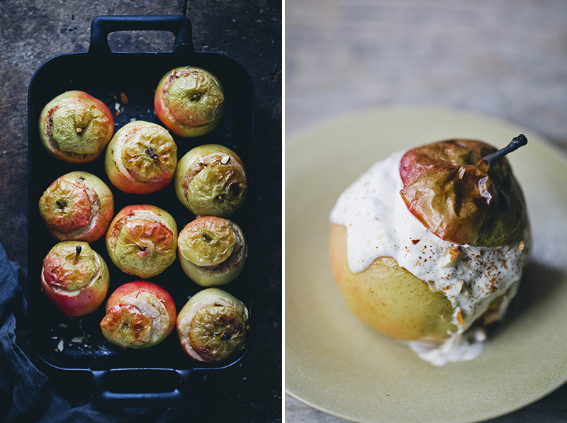 Just checking in quickly today to share a nice little apple breakfast recipe that we have been making a lot lately. We know that August hasn’t ended yet and we all want to hold on to summer for as long as we can and pretend that winter isn’t coming. But we thought we’d provide you with a little something for when the first chillier days arrive (which has already happened here btw) and you hear raindrops come knocking on your window sills. For those moments, you can just bust these baked apples out of the oven, let the scent of warm cinnamon spread through your home and immediately feel a little better about the whole situation.