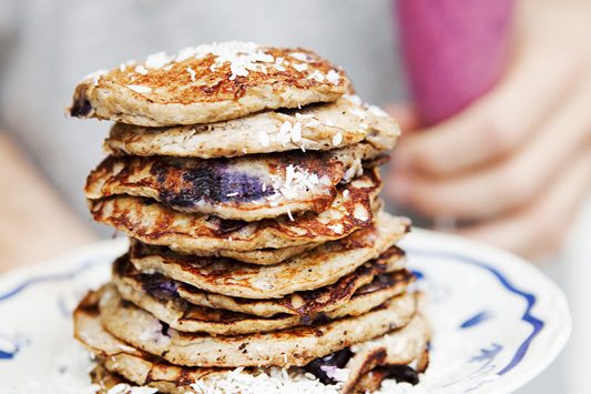 We have been making variations of this both as breakfast and dessert – filling them with oatmeal topped with yogurt for breakfast, and a date and almond paste topped with whipped cream for dessert.