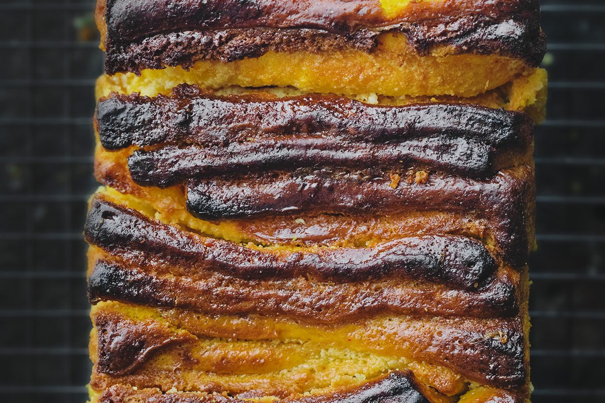 Add hazelnuts, rolled oats, cacao powder and salt to a food processor and mix thoroughly until the texture resembles sand. Pour into a separate bowl. Add dates and coconut oil to the food processor and mix into a paste. Pour the mixed nuts back and pulse everything until it’s combined into a dough. Roll it into a log and divide into two equal halves. Use a pen to copy the exact size of the baking dish onto a baking paper, then roll out one of the wafer dough halves on the baking sheet until it has the right shape, use a second baking sheet on top to prevent the rolling pin from sticking. Transfer the baking paper with the wafer to the baking dish and place in the freezer while preparing the ice cream (or vegan version further down).