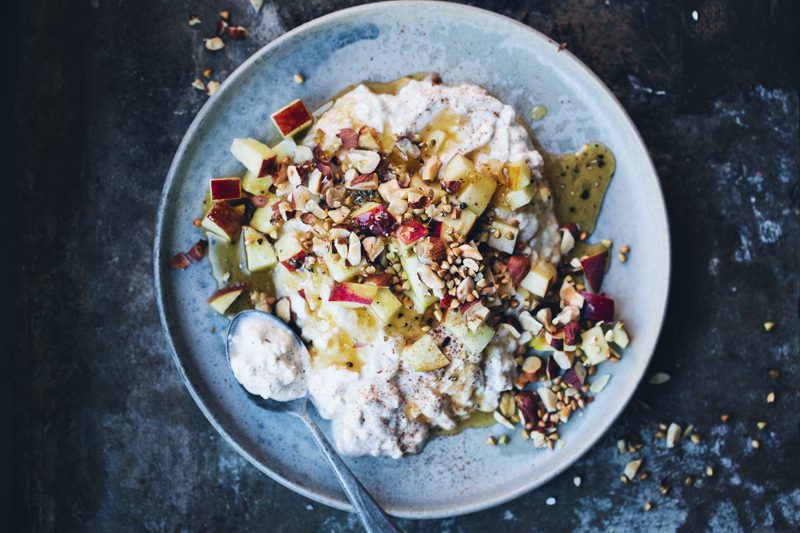 By placing two pillows under my left elbow, I can hold sleeping baby Gabriel with one arm and type this text on the laptop that is balancing on my right leg with the other hand. It’s brilliant! I can even reach that bowl of soaked oats with raisins, apple and crunchy peanut butter that stands there on the sofa table as a night snack. Okay, maybe not brilliant. This balancing act is pretty tricky actually. And I suspect that my left arm will start to go numb soon. I should probably focus on my son and just wait for Luise to get back from the shower. But I did promise 192 people on instagram that I would post this recipe today. And I’ve already spent an hour tucking the other two kids to bed with a night story that was so boring that I fell asleep 14 times, so I feel like I really need to do this now or I’ll be starting the year by breaking a promise.