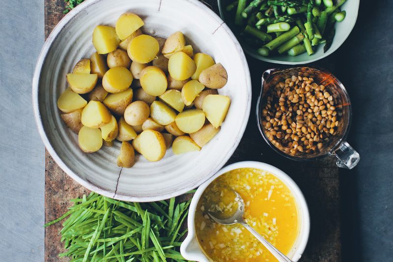 Meanwhile, cook the lentils in a saucepan with the water for 15 minutes or until tender and can be mashed easily between two fingers. Add sea salt towards the end of the cooking time. Drain any excess water and leave to cool.