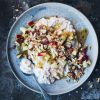 Serve the soup topped with a quartered and sliced avocado, a dollop of yogurt, jalapeno chermoula beans (see recipe below), a scattering of hemp seeds and a drizzle of olive oil.