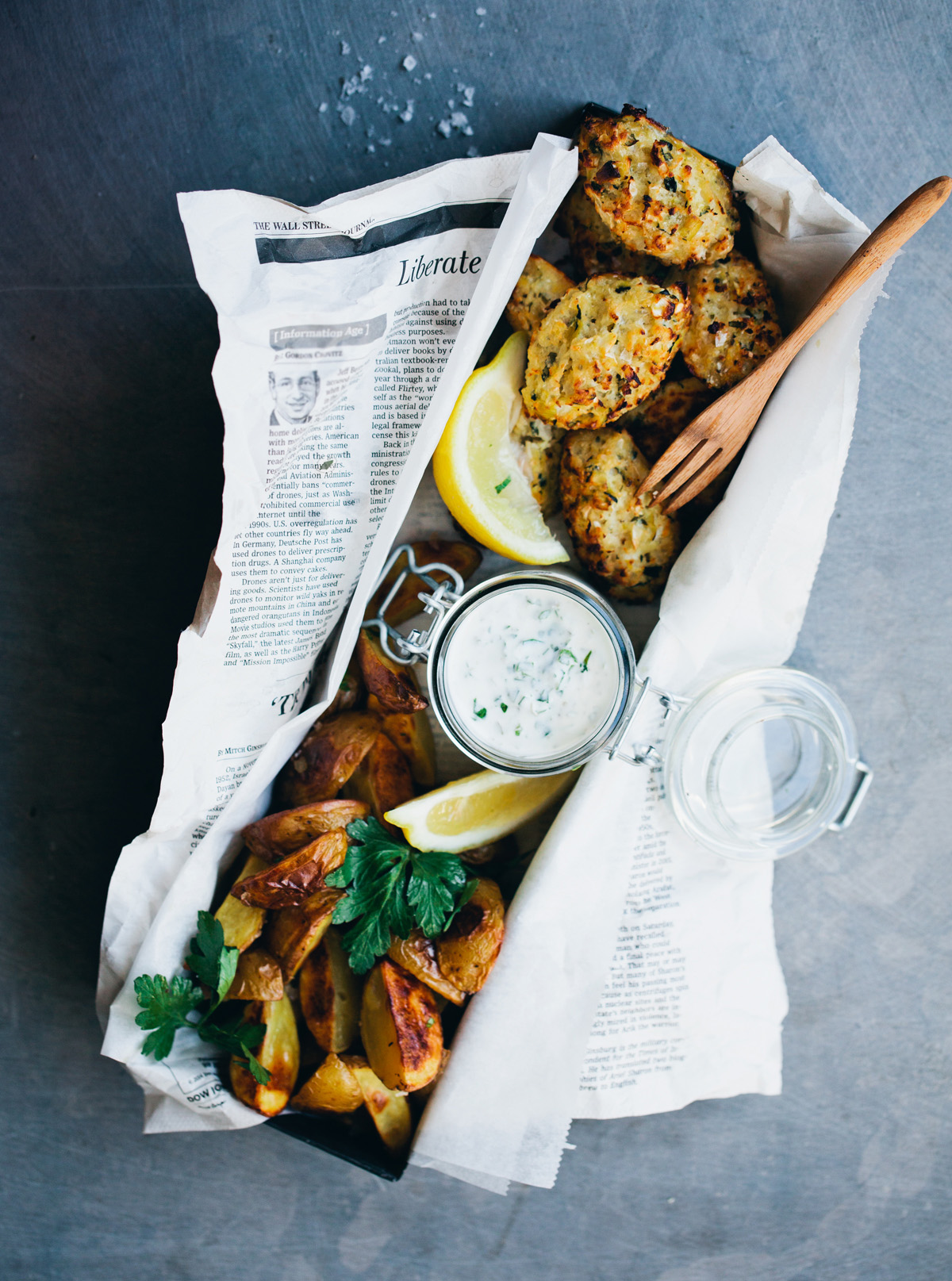 Our idea is that we will cook this Cauli "Fish" & Chips recipe tomorrow (Saturday 28 March) afternoon and invite you to do the same. We will share step by step photos and videos on my instagram story, perhaps with some help from the kids if they play along. I'll post a question box on one of the stories where we can answer your questions about the recipe and also chat about high and low. And if you tag us in your cooking photos, we will share them (maybe we could also post them on here later?). The thesis is that we will all feel a little more connected knowing that we are sharing the same dinner this weekend. Is it a corny idea? Fun?! Let us know what you think in a comment. Or if you have any questions that we should answer tomorrow. We don't know exactly how and if this will work. Worst case we will be the only ones cooking this tomorrow. But then at least we have made dinner :) It would be easier to cook it as an instagram live broadcast but I honestly find that a little too scary. And I can't even imagine all the bloopers that could happen during a one hour broadcast with three kids in the kitchen ("daddy, I need to go to the bathroom" "daddy, Noah is drawing on the floor again" "daddy, I squeezed lemon into my eye!" "daddy, look at meeeee"). Since we are all in different time zones it's not going to be a perfectly synchronized dinner, but we will save it in my instagram highlight so you can join in at any time.