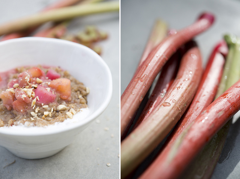 We topped it with rhubarb from our csa box, lightly cooked into a compote with fresh apples as sweetener. They taste so fresh with a hint of sweetness and tartness. If you like it sweeter you can add some agave or maple. In Denmark they traditionally also serve this porridge with whipped cream, but we use yogurt. It’s truly a breakfast for champions.