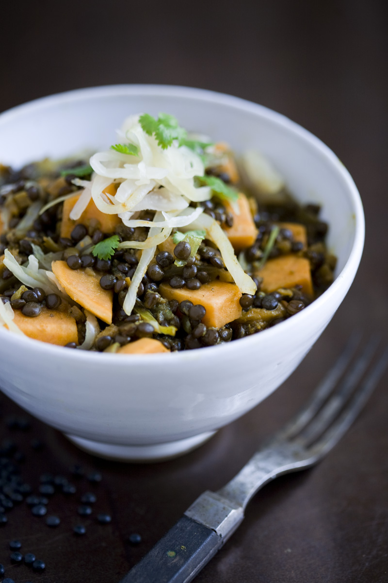 Beluga Lentil, Sweet Potato & Fennel Stew with Sauerkraut