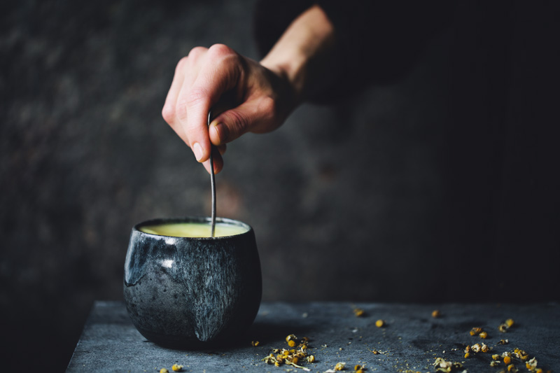 Warm chamomile tea with honey is indeed a good sleep-aid. Chamomile is calming and honey is anti-bacterial. We kept a huge jar New Zealand Manuka with us in the van and it felt like such a luxury. Active Manuka honey is known for its medicinal properties. If you can’t find it or afford it, choose another unheated quality honey. Coconut oil is a true super food with a long list of health benefits, add it to your daily routine and always choose a cold pressed quality oil. It gives tea a round and rich consistency and leaves you more satisfied. It can however feel a little oily and unusual if you are not used to it, so I recommend starting with a little less. Turmeric, ginger and cinnamon add great flavour as well as immune-boosting and anti-inflammatory properties. Try adding a little black pepper, the black pepper helps to enhance the bioavailability of curcumin in turmeric by a thousand times.