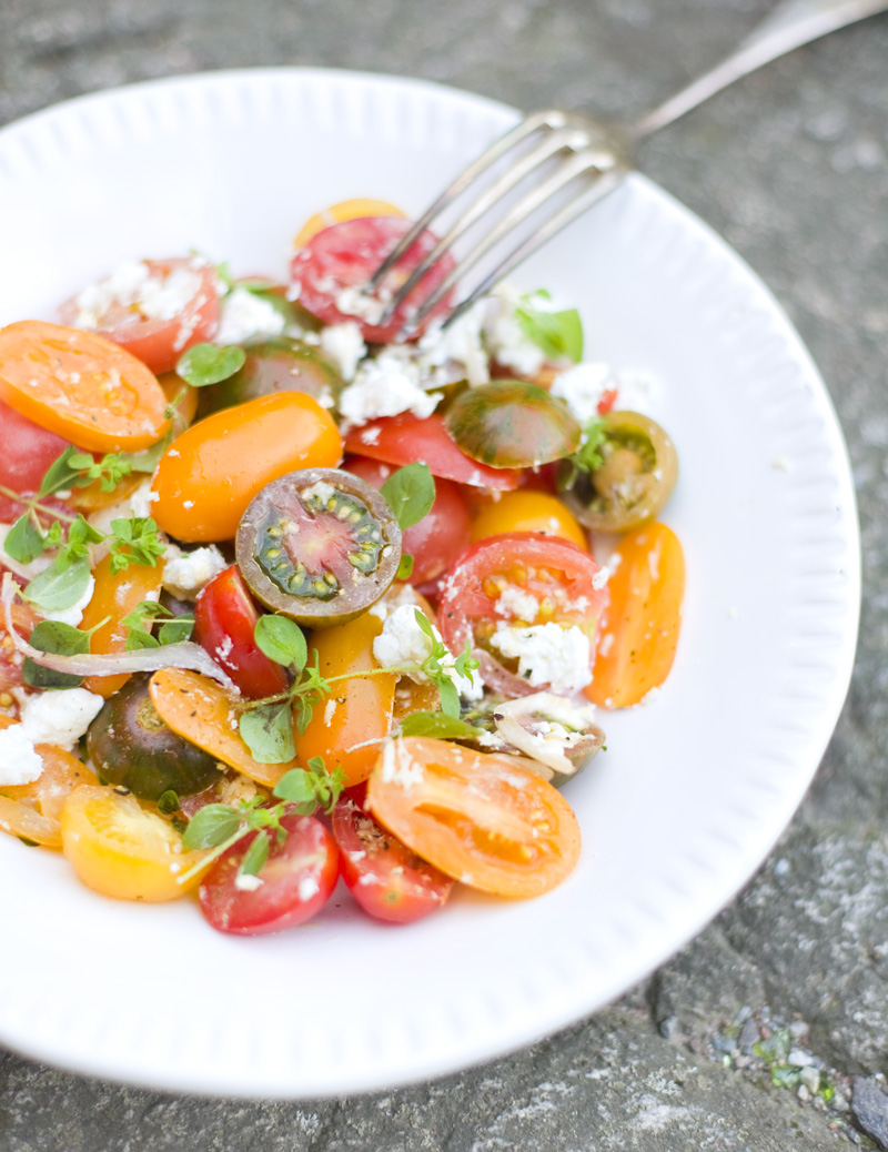 • Ooooh this salad looks SO good. I love the addition of goats cheese. I can only imagine how good this tastes. I love heirloom tomatoes, it's just a shame they are so difficult to get hold of.