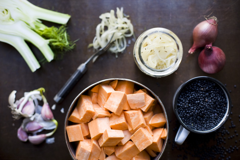 Beluga Lentil, Sweet Potato & Fennel Stew with Sauerkraut
