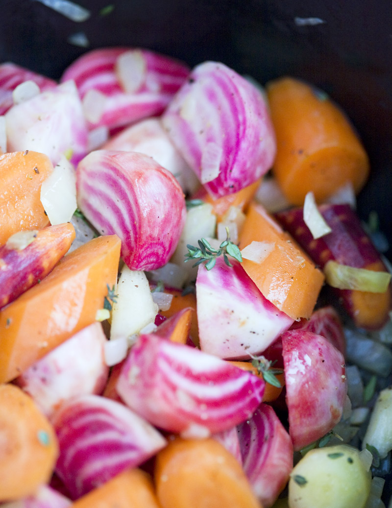 8 small beets, peeled & quartered (we used Chioggia beets)